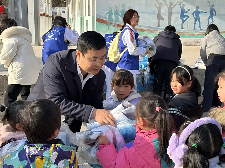 随后,工作组一行与平岭小学师生在学校操场举行了简单而温暖的捐助仪式,工作组人员和学生志愿者一起向平岭小学37名学生每人分发了一套冬季防寒保暖服和一套夏季校服。孩子们接过这份温暖的礼物,脸上绽放出如花朵般灿烂的笑容,眼中闪烁着对未来的无限憧憬与期待。