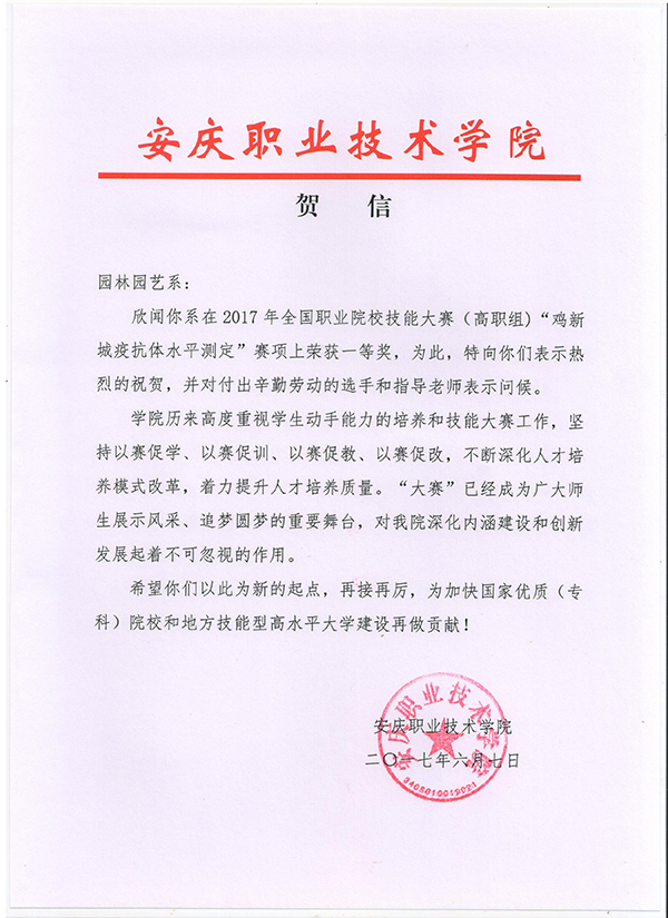 致园林园艺系的贺信