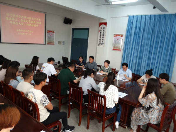 5月15日下午,社会事业系党总支在系会议室组织专题学习会,传达学习习近平总书记在北京大学师生座谈会和纪念马克思诞辰200周年大会上的两个重要讲话精神。系教职工党员、部分学生代表参加了学习会。