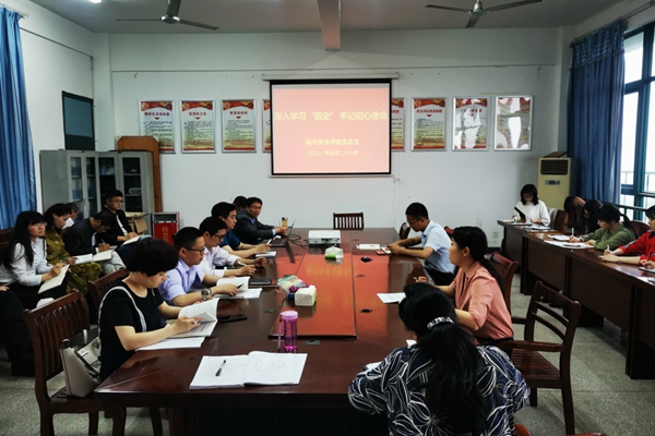 5月26日下午,现代商务学院组织全体教职工开展主题为“深入学习四史,坚守初心使命”的学习活动,现代商务学院党总支副书记余瑰主持活动并主讲,全体教职工参加了此次学习。